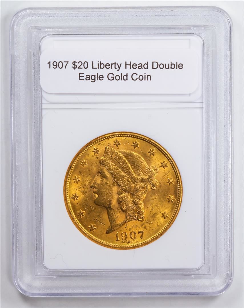 One 1907 $20 Liberty Head Double Eagle Gold Coin.