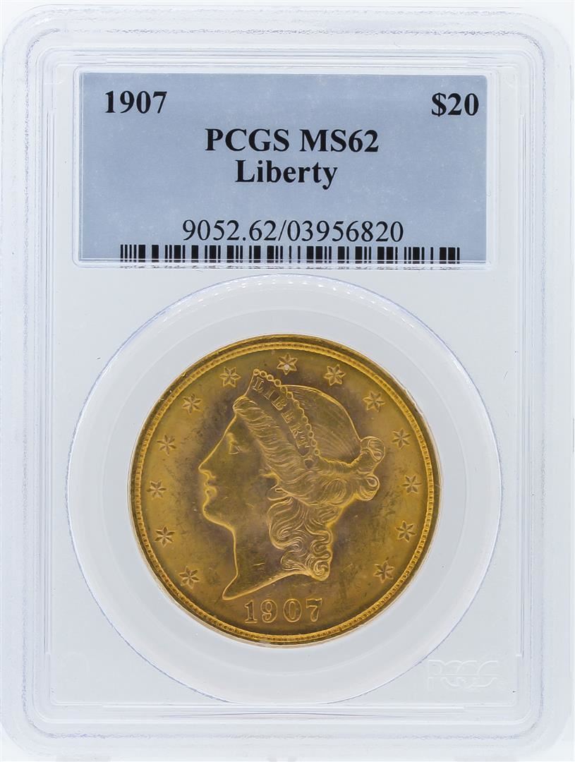 One 1907 PCGS MS62 $20 Liberty Head Double Eagle Gold Coin. PCGS Certified.