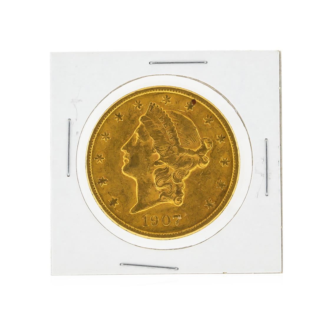 One 1907-S $20 AU Liberty Head Double Eagle Gold Coin.
