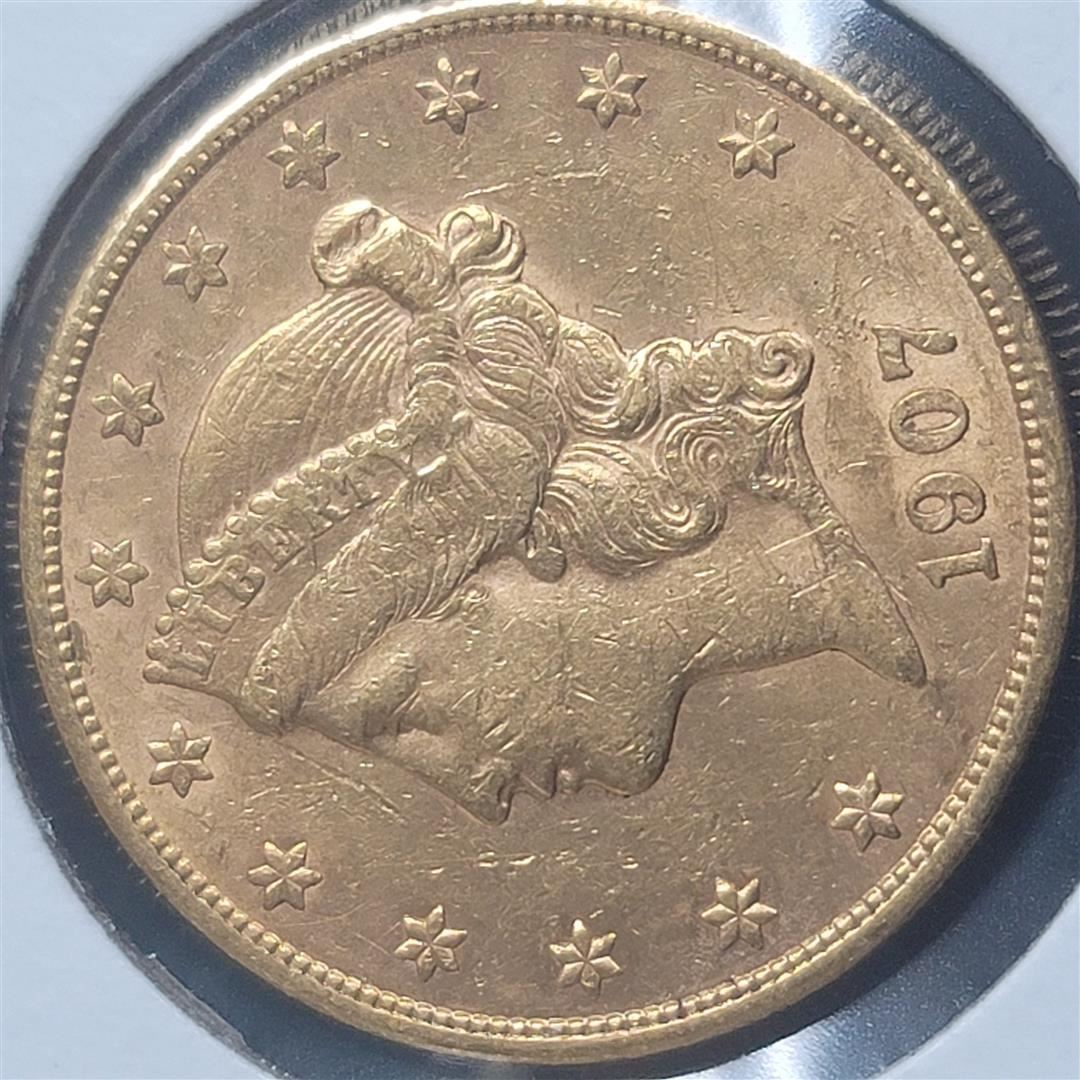 One 1907-S 20$ Liberty Head Double Eagle Gold Coin BU.