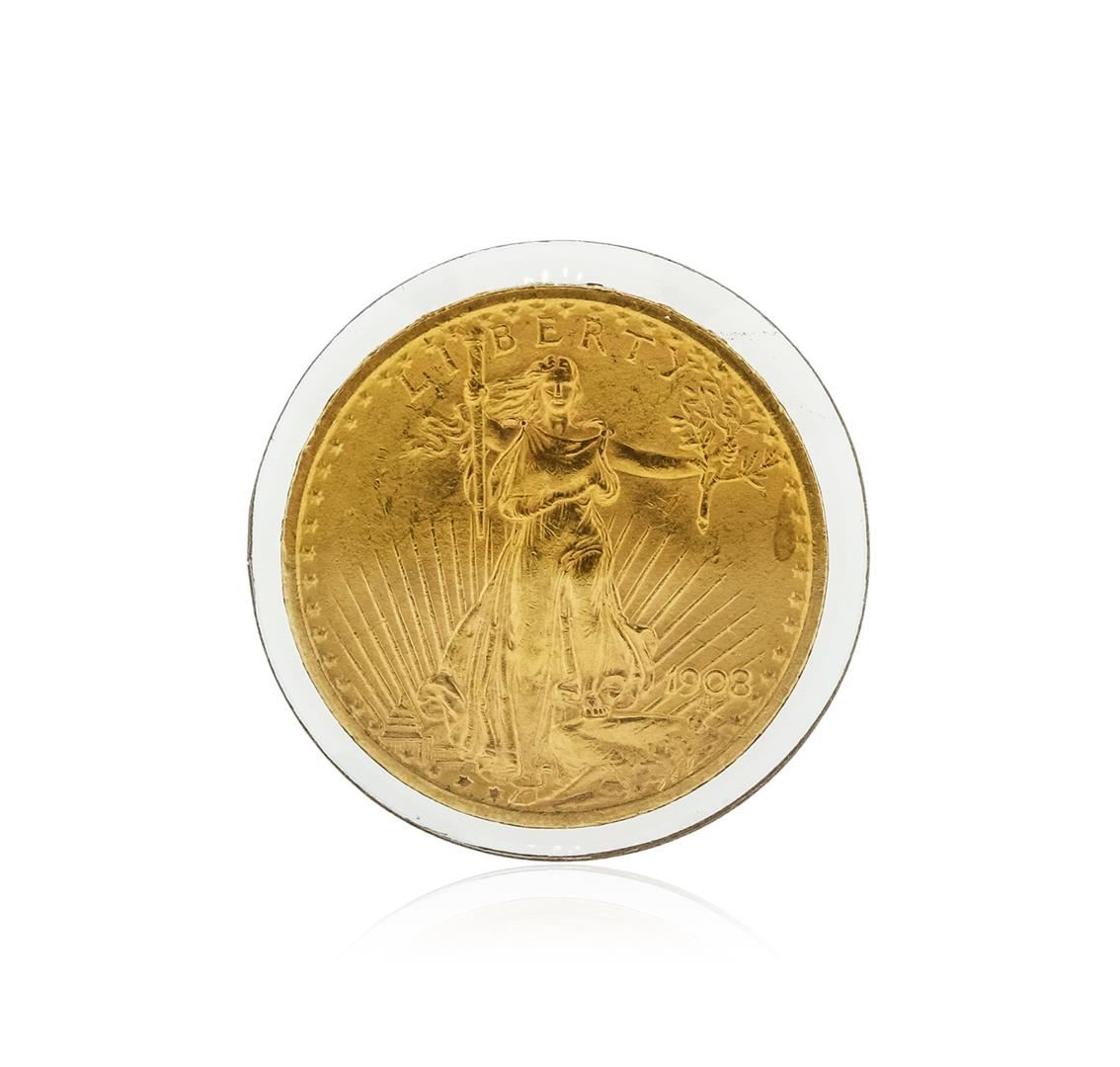 One 1908 $20 Cu St. Gaudens No Motto Double Eagle Gold Coin.