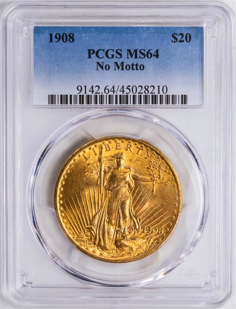 One 1908 $20 St. Gaudens Double Eagle Gold Coin PCGS MS64.