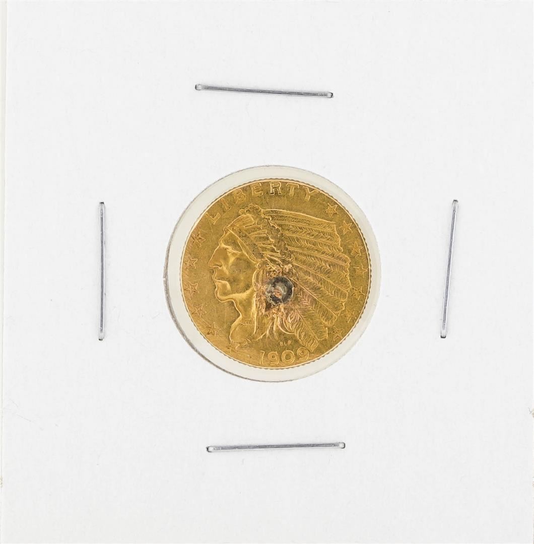 One 1909 $2 1-2 Indian Head Gold Coin C.
