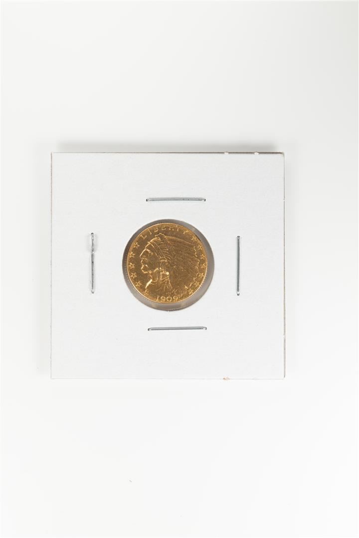 One 1909 $2 1/2 Indian Head Quarter Eagle Gold Coin.