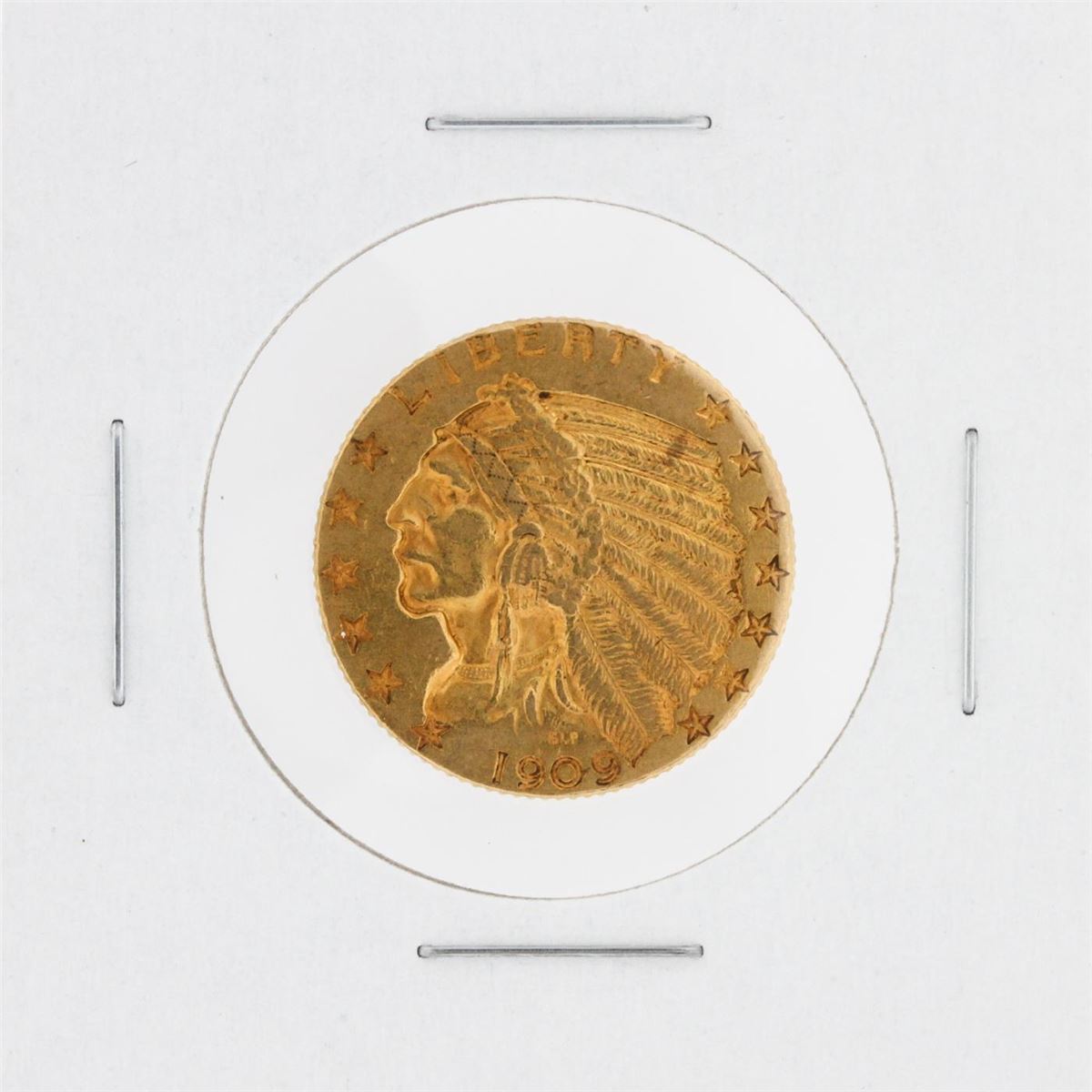 One 1909 $5 AU Indian Head Half Eagle Coin.