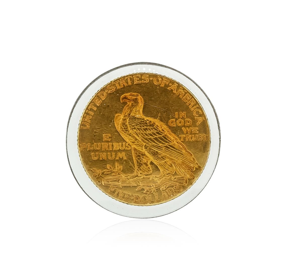 One 1909-D $5 Cu Indian Head Half Eagle Coin.