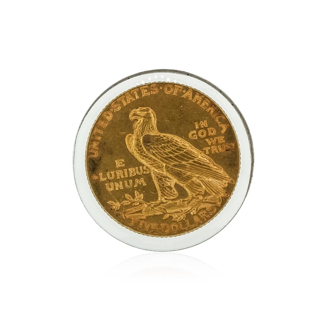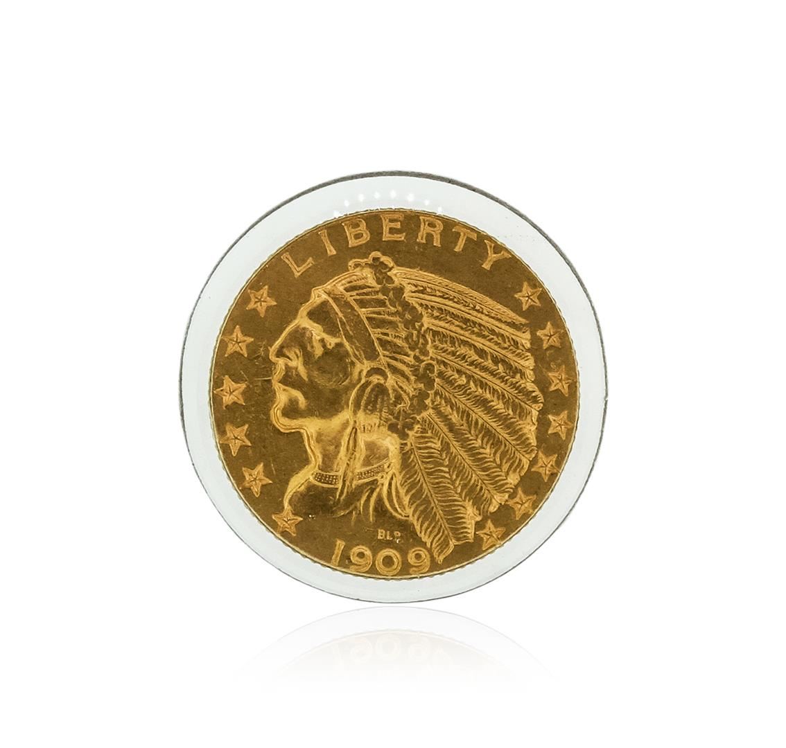 One 1909-D $5 Cu Indian Head Half Eagle Coin.