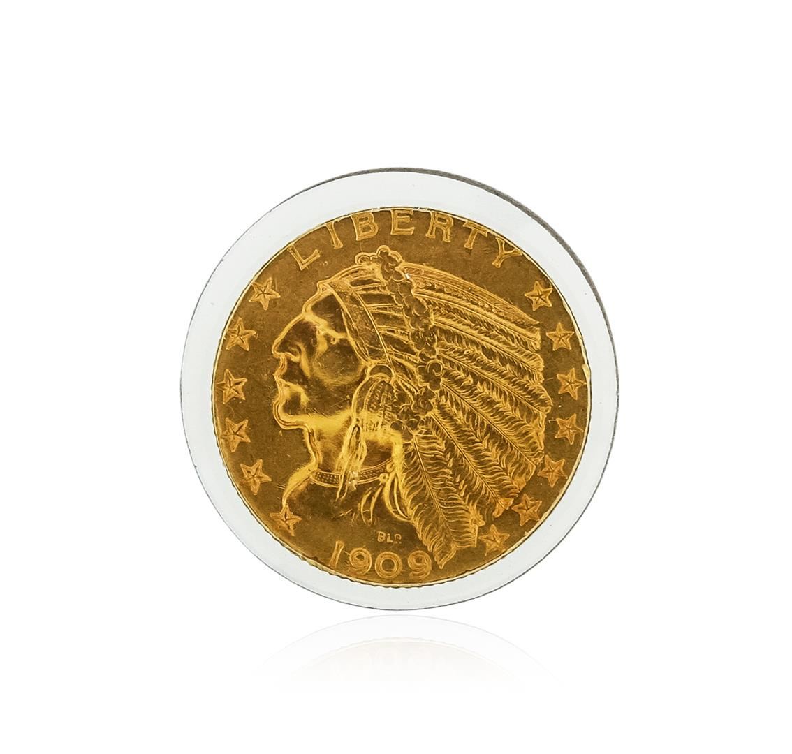One 1909-D $5 Cu Indian Head Half Eagle Coin.