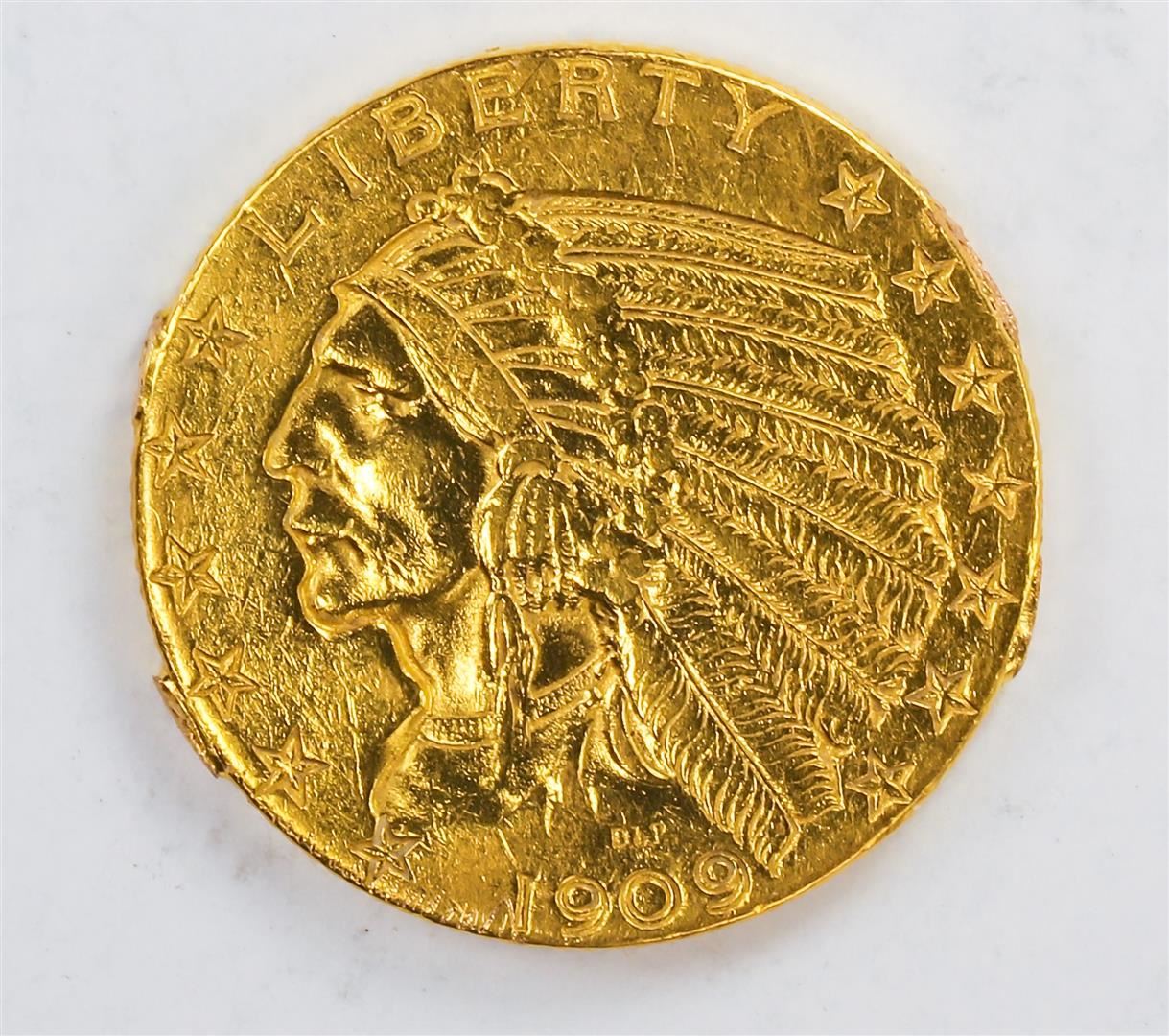 One 1909-D $5 Indian Head Half Eagle Gold Coin C+.