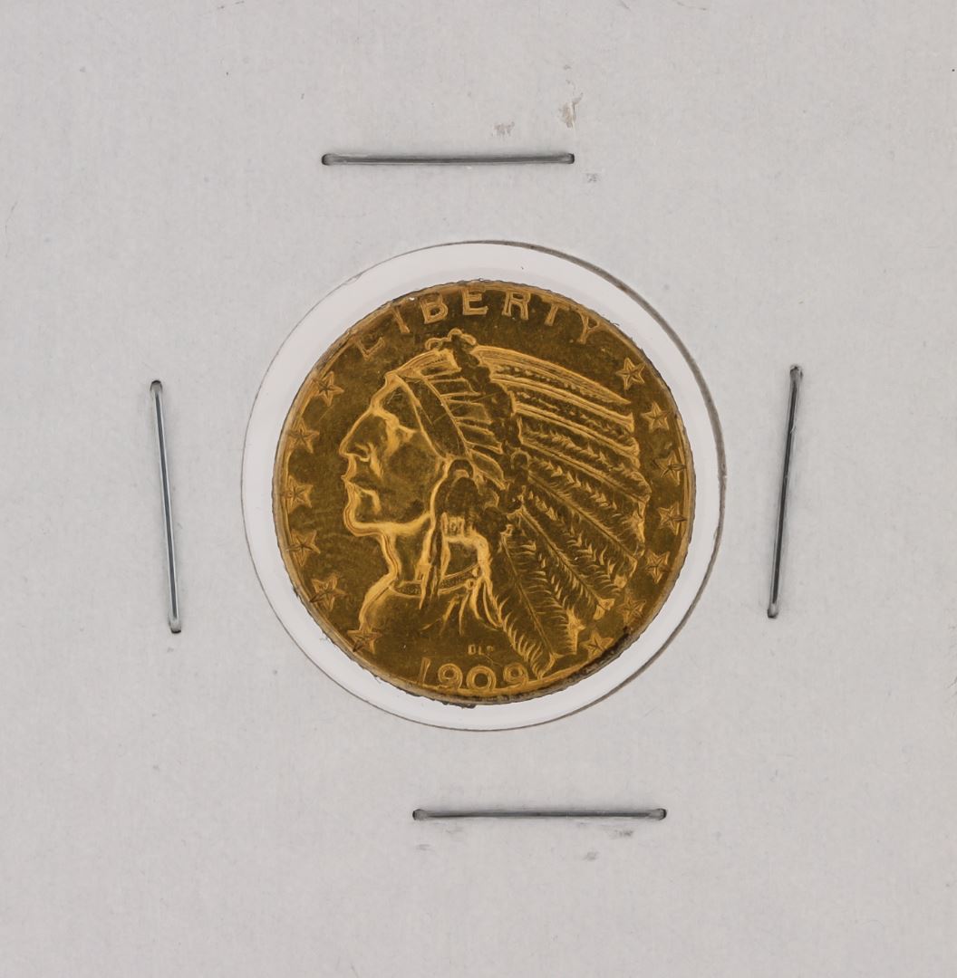 One 1909-D $5 Indian Head Half Eagle Coin.