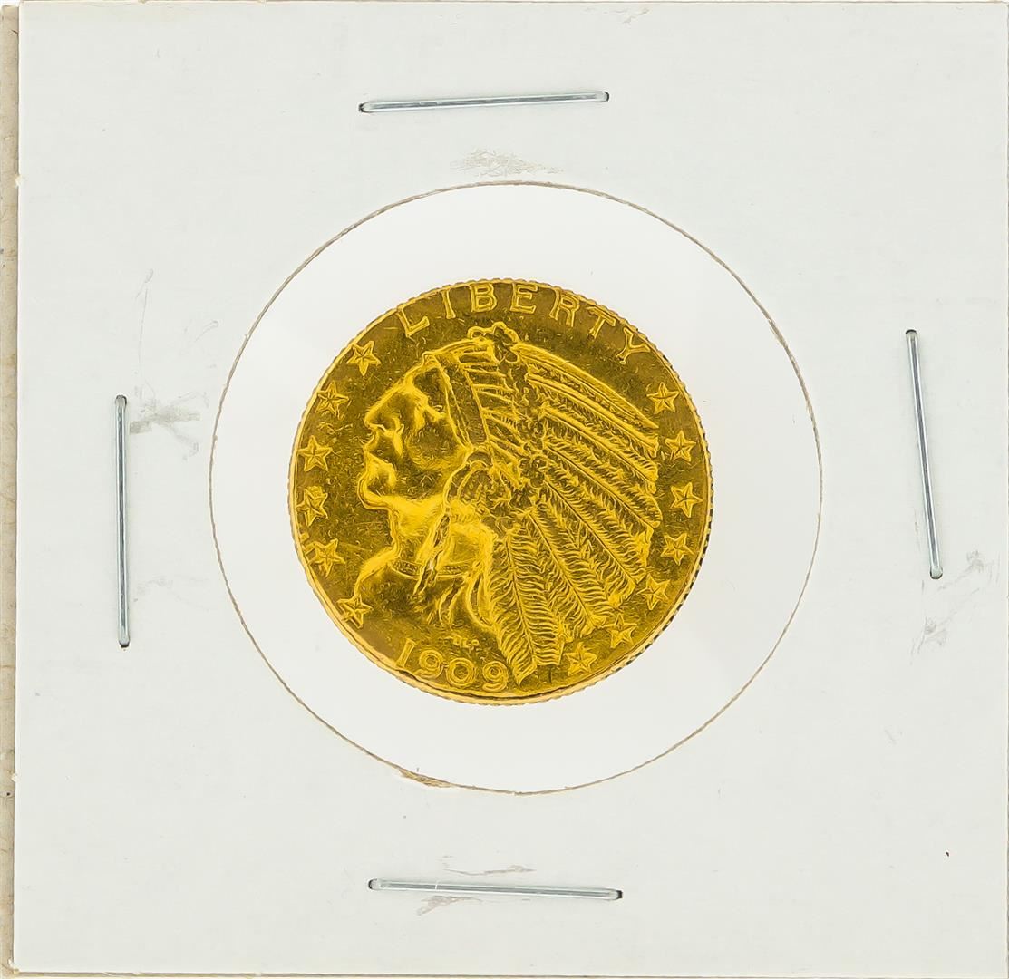 One 1909-D $5 Indian Head Half Eagle Gold Coin.