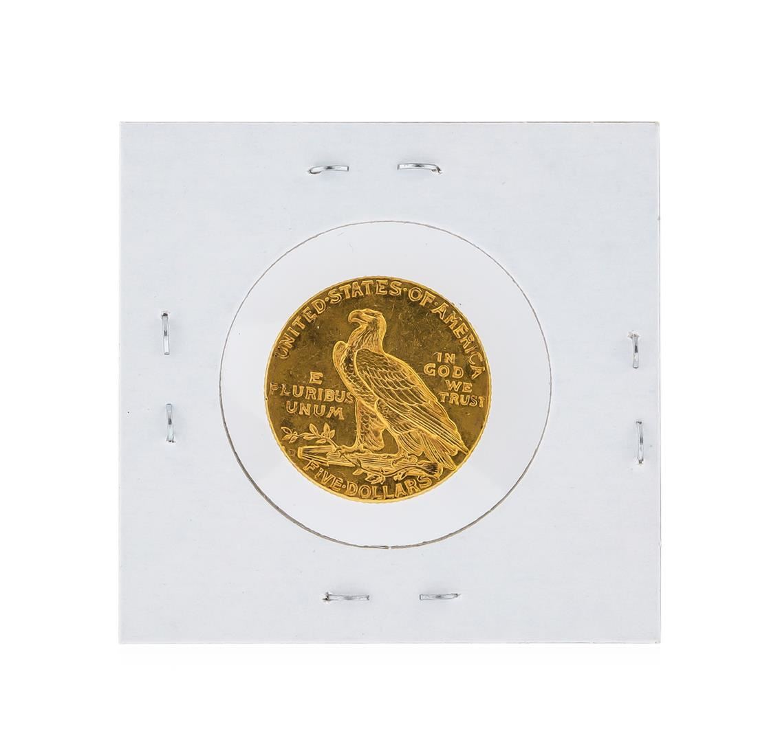 One 1909-D $5 Indian Head Half Eagle Gold Coin.