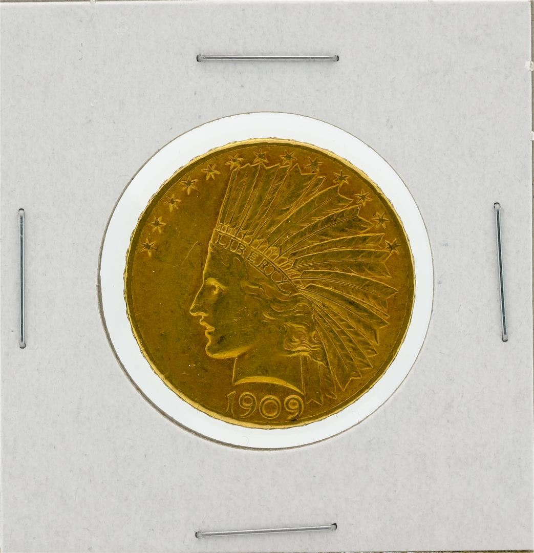 One 1909-S $10 AU Indian Head Eagle Gold Coin.
