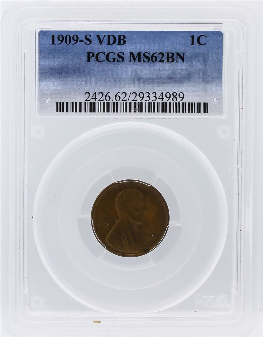 One 1909-S VDB Penny Lincoln Wheat Cent PCGS Graded MS62 BN. PCGS Certified.