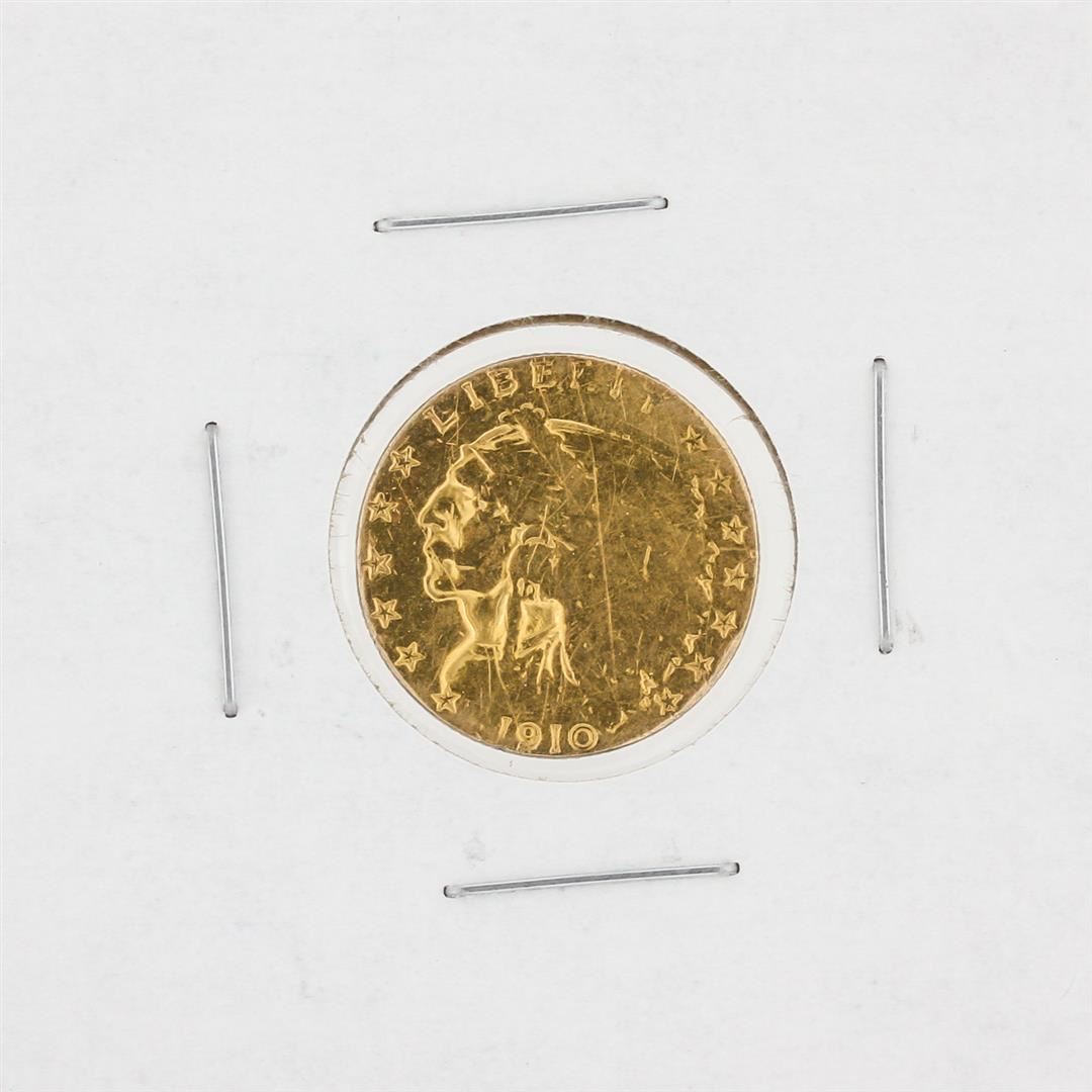 One 1910 $2.50 Indian Head Quarter Eagle Coin.