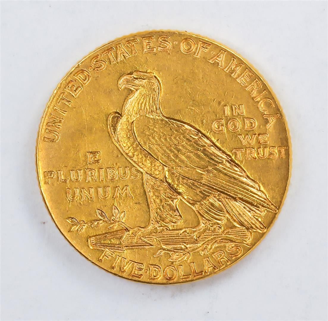 One 1910 $5 Indian Head Half Eagle Gold Coin CU.