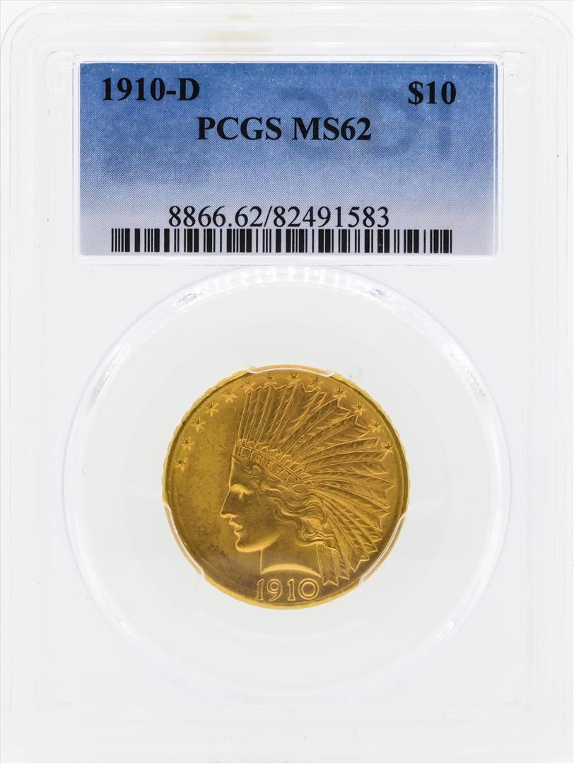 One 1910-D $10 Indian Head Eagle Gold Coin PCGS MS62. PCGS Certified.