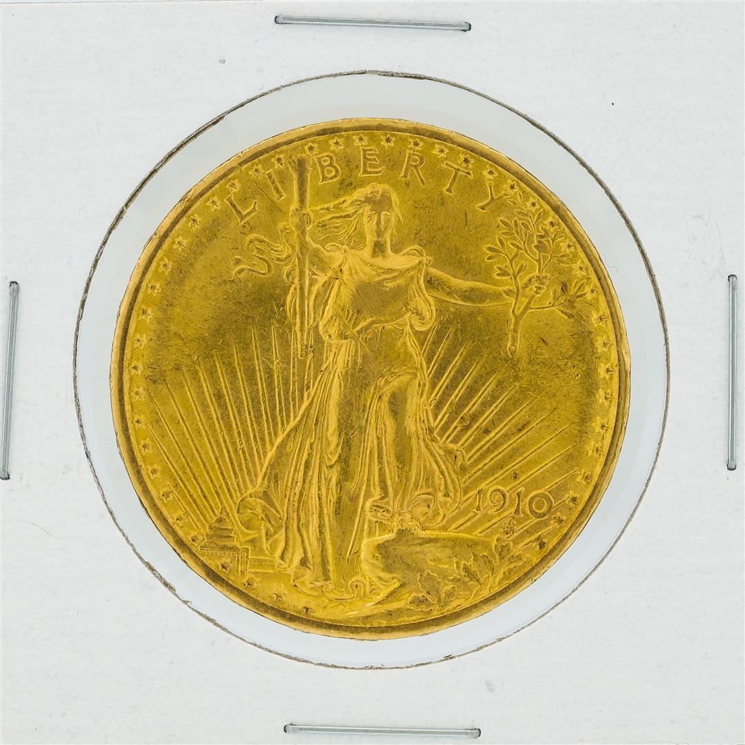 One 1910-S $20 AU St. Gaudens Double Eagle Gold Coin.