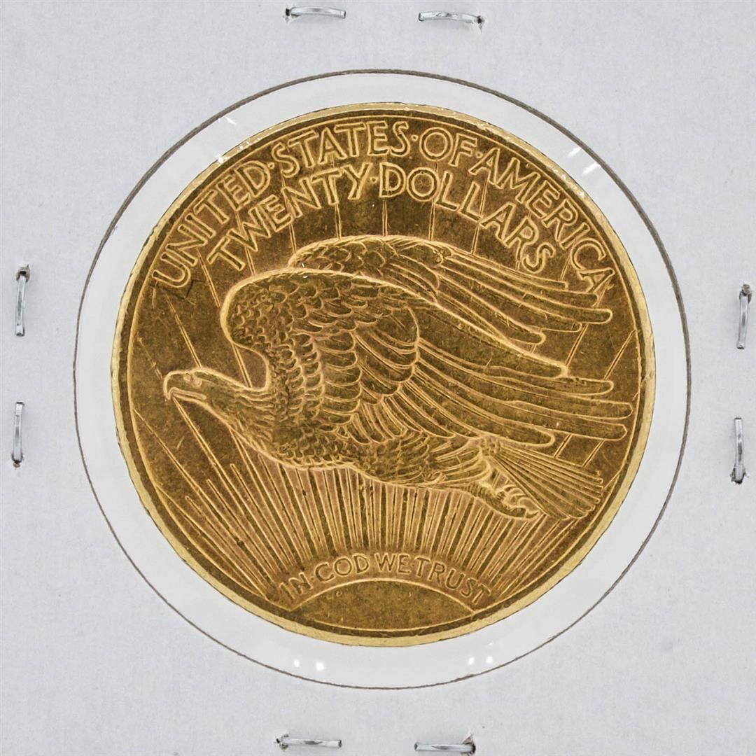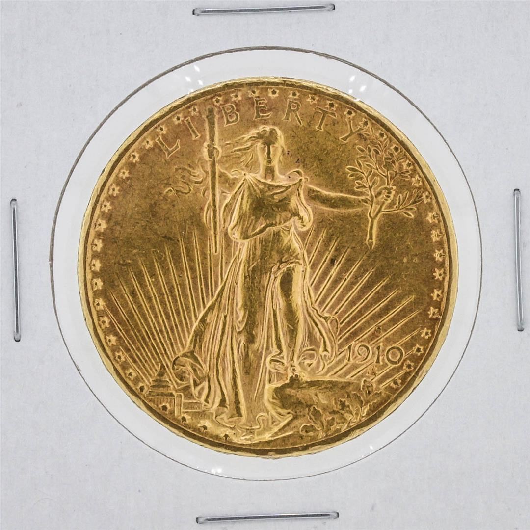 One 1910-S $20 CU St. Gaudens Double Eagle Coin.
