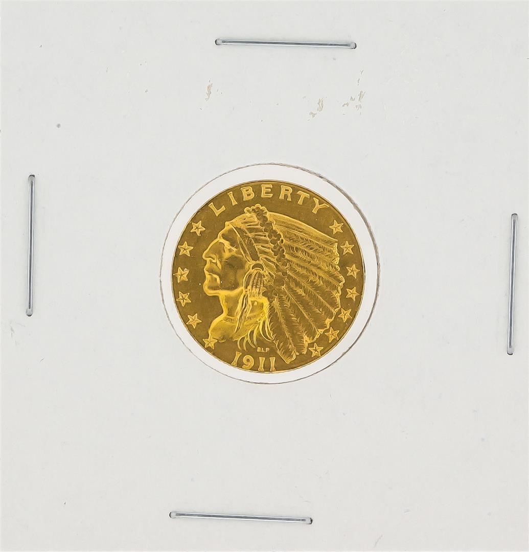 One 1911 $2.50 BU Indian Head Quarter Eagle Gold Coin.