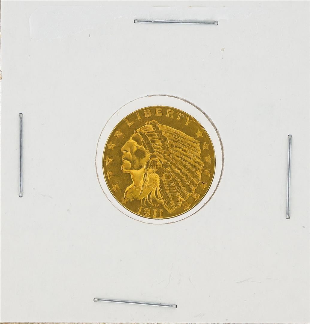 One 1911 $2.50 Indian Head Quarter Eagle Gold Coin.