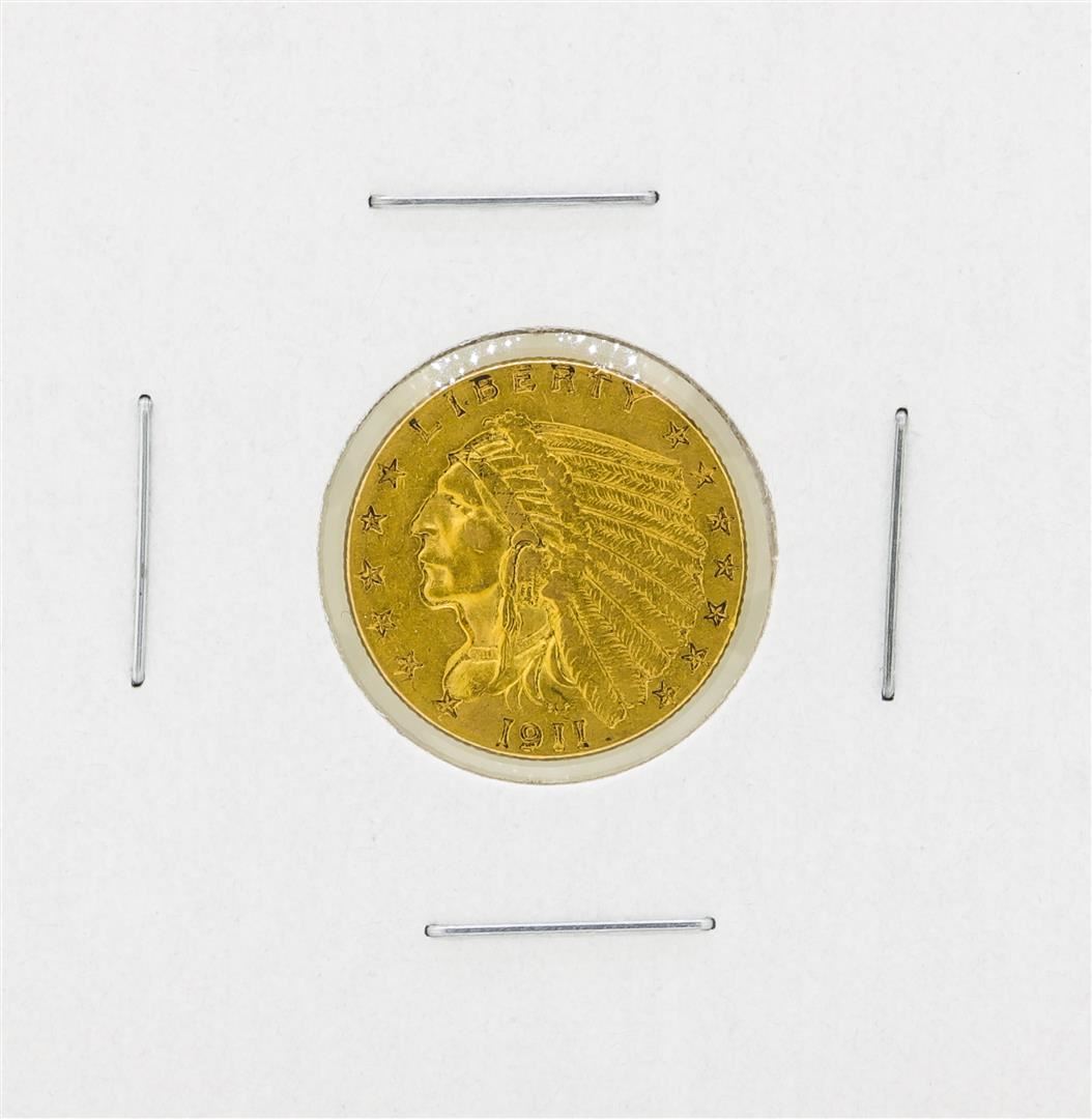 One 1911 $2.50 XF Indian Head Gold Coin.