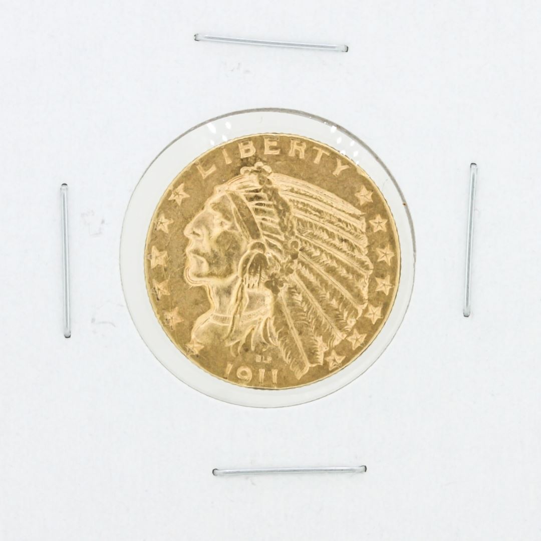 One 1911 $5 AU Indian Head Half Eagle Gold Coin.