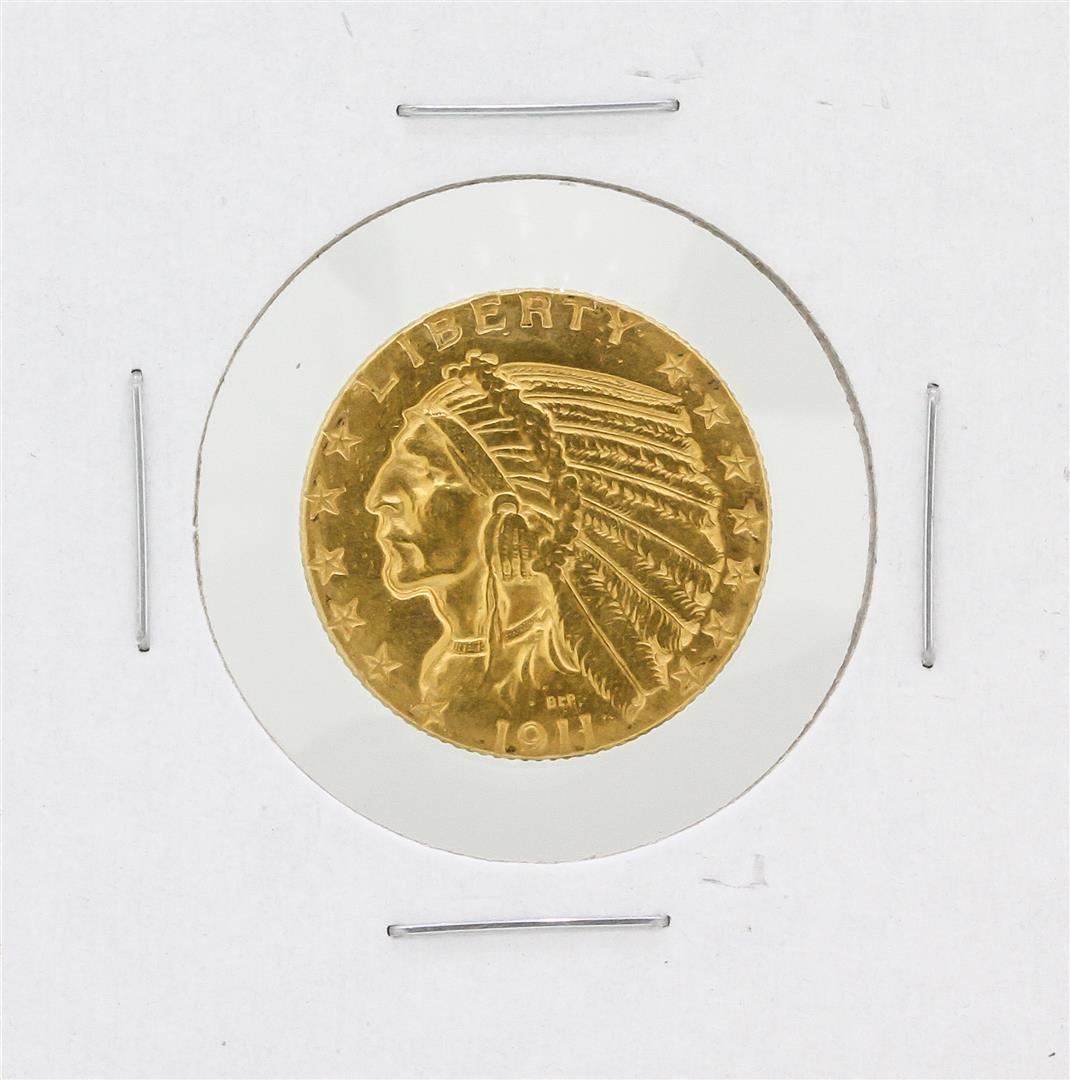 One 1911 $5 Indian Head Half Eagle Gold Coin.