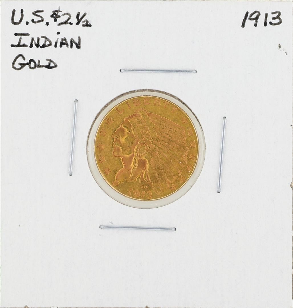 One 1913 $2 1/2 Indian Head Gold Coin.