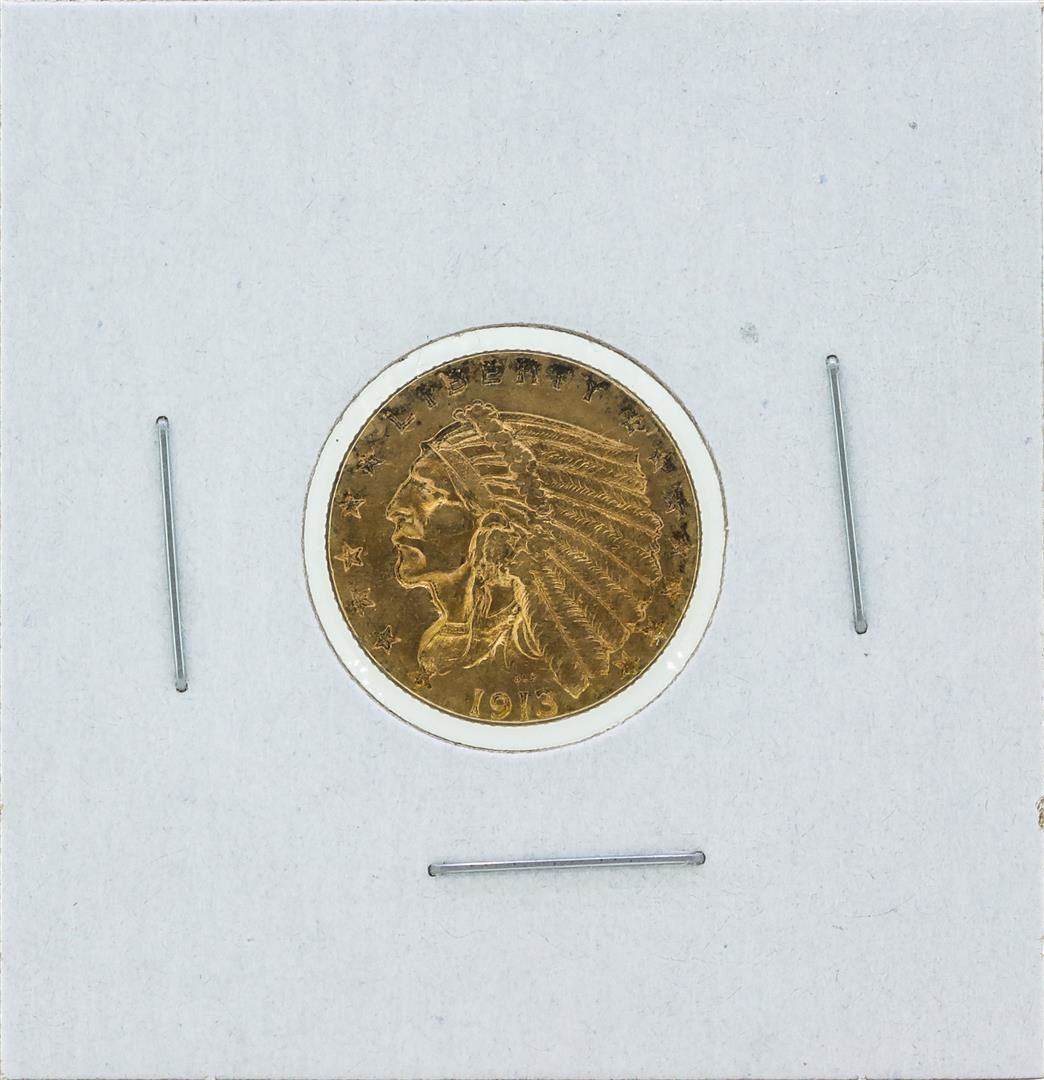 One 1913 $2 1-2 Indian Head Quarter Eagle Gold Coin AU