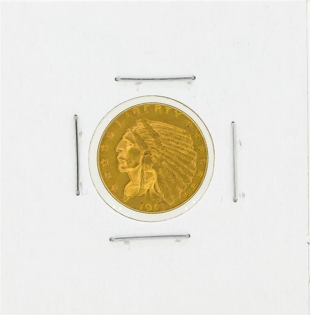 One 1913 $2.50 AU Indian Head Quarter Eagle Gold Coin.