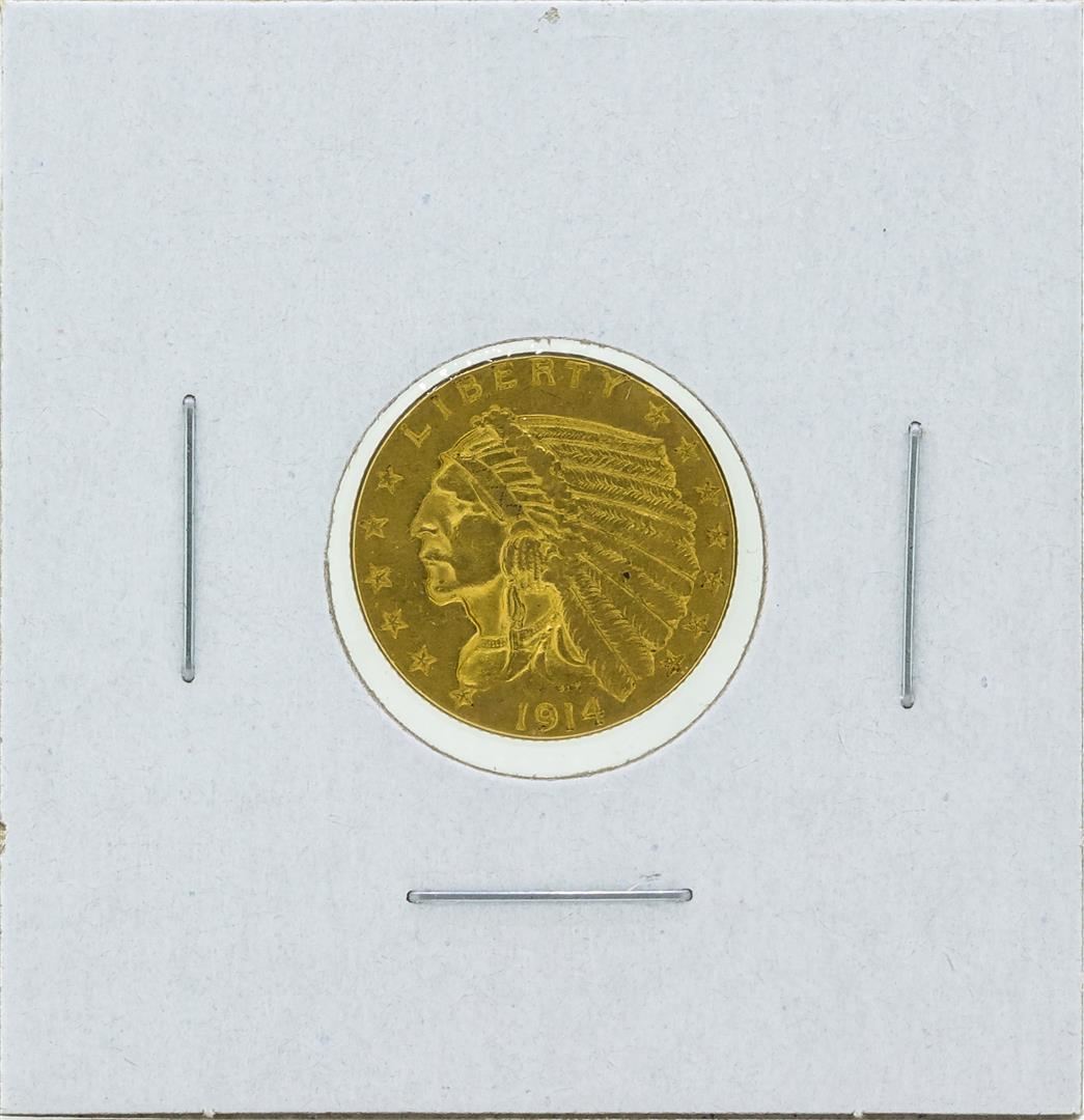 One 1914 $2 1-2 Indian Head Quarter Eagle Gold Coin CU