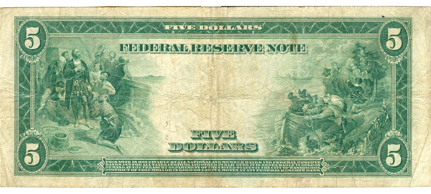 One 1914 $5 United States Red Seal Large Note. Signature combination of Burke/Mcadoo (apparently rare).
