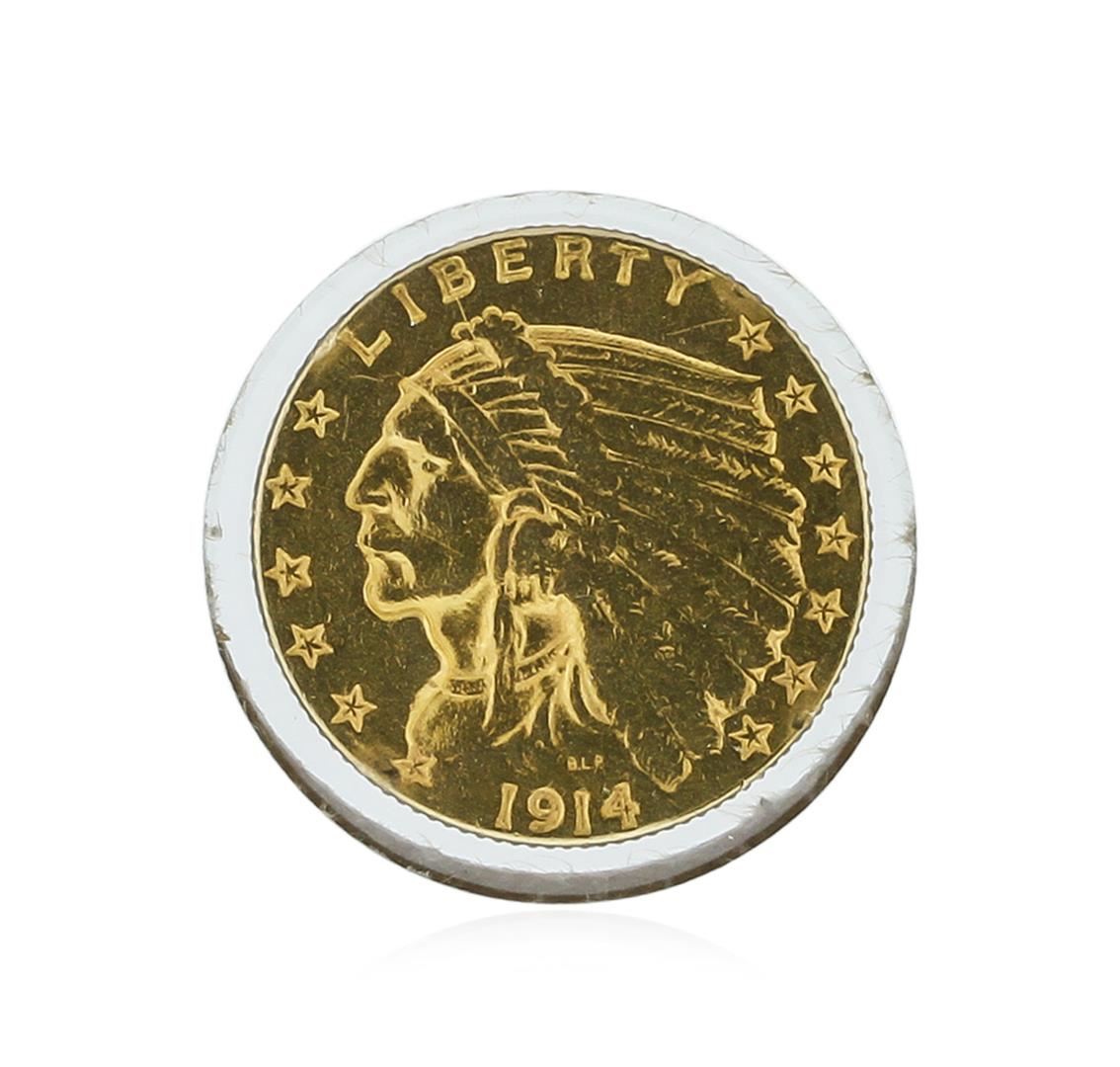 One 1914-D $2.50 Indian Head Quarter Eagle Gold Coin.