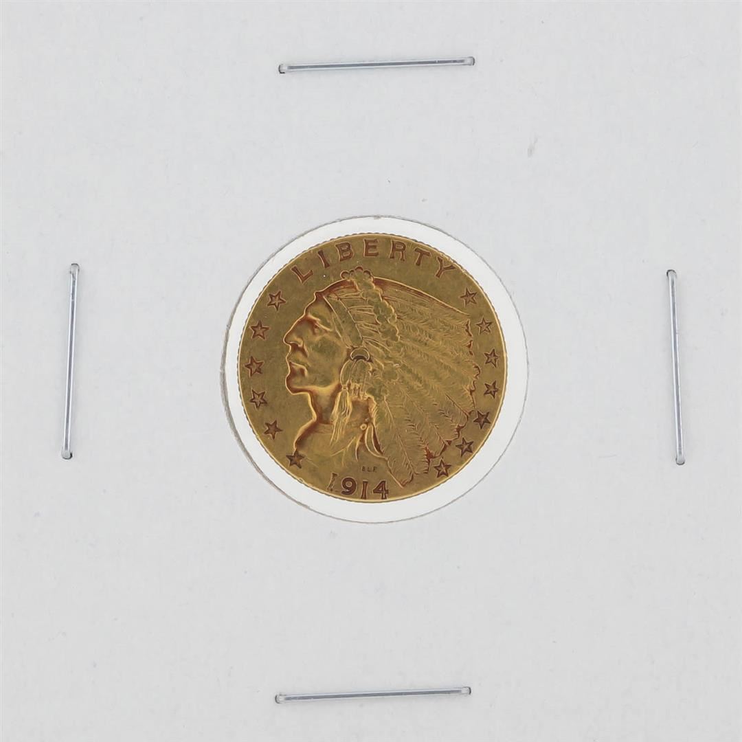 One 1914-D $2.50 XF Indian Head Quarter Eagle Gold Coin.