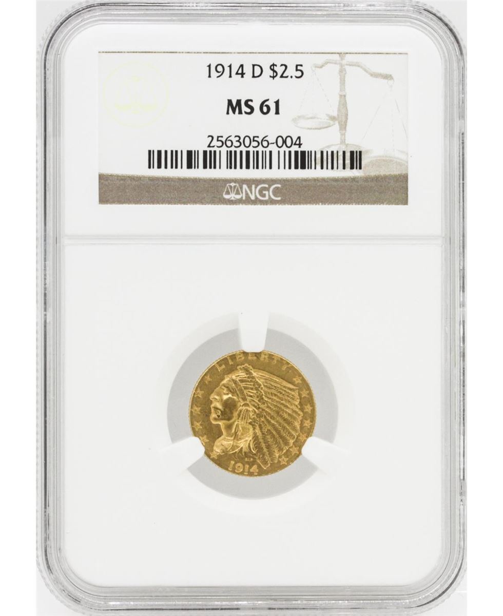 One 1914-D NGC MS61 $2.50 Indian Head Quarter Eagle Coin.