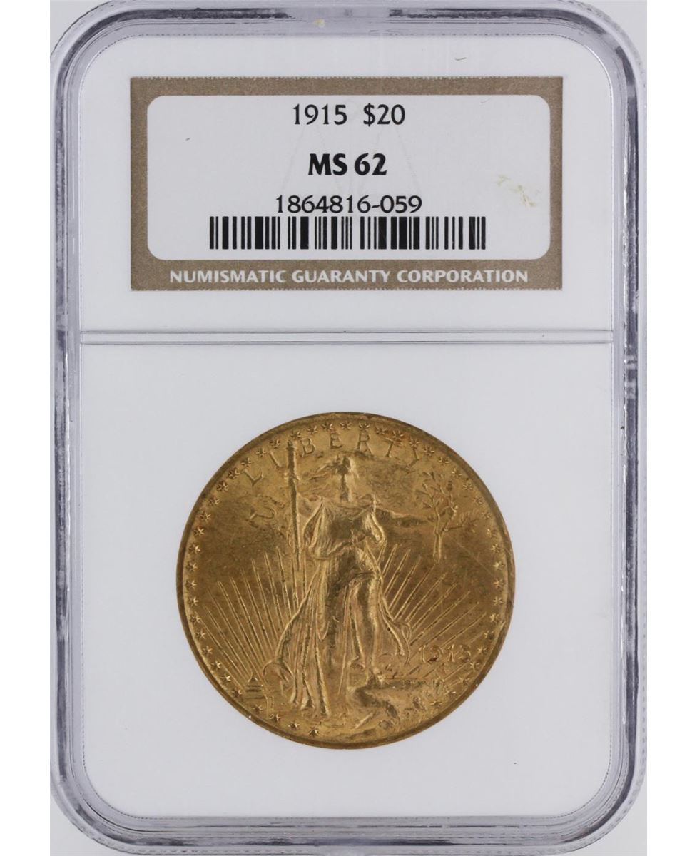 One 1915 $20 MS62 Double Eagle St. Gaudens Gold Coin.