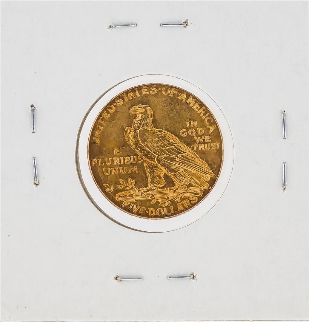 One 1915 $5 AU Indian Head Half Eagle Gold Coin.