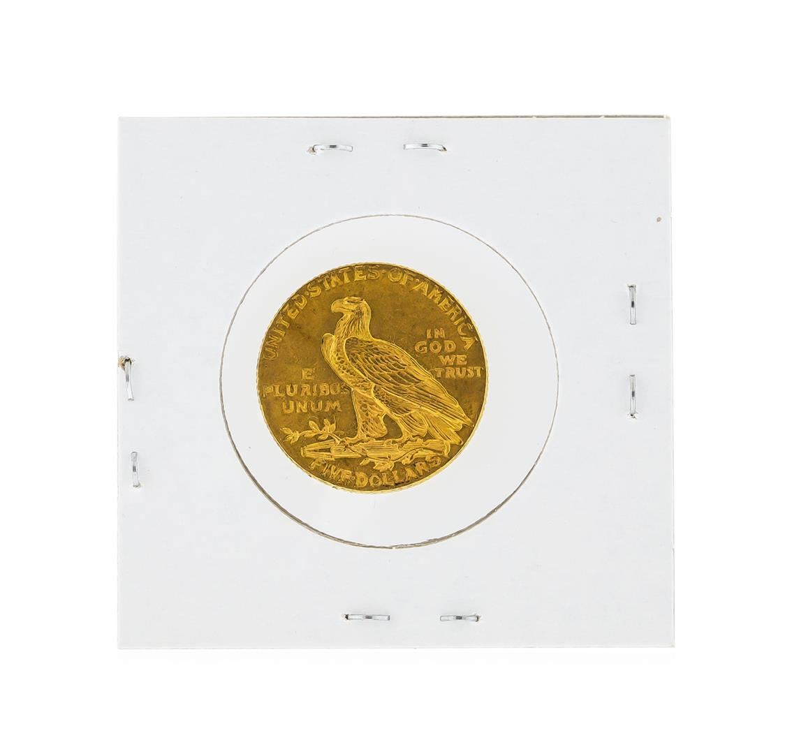 One 1915 $5 Indian Head Half Eagle Gold Coin.