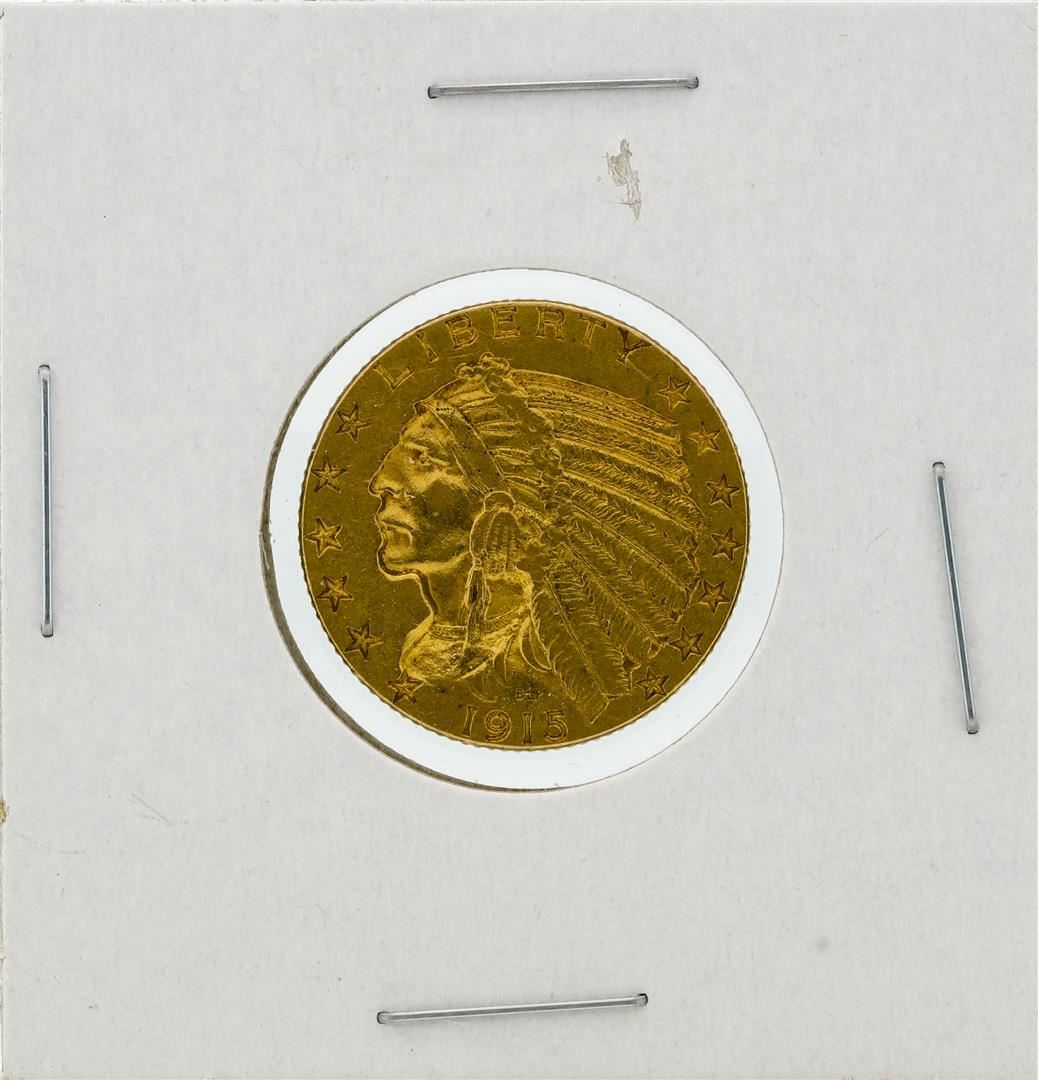 One 1915 $5 Indian Head Half Eagle Gold Coin.