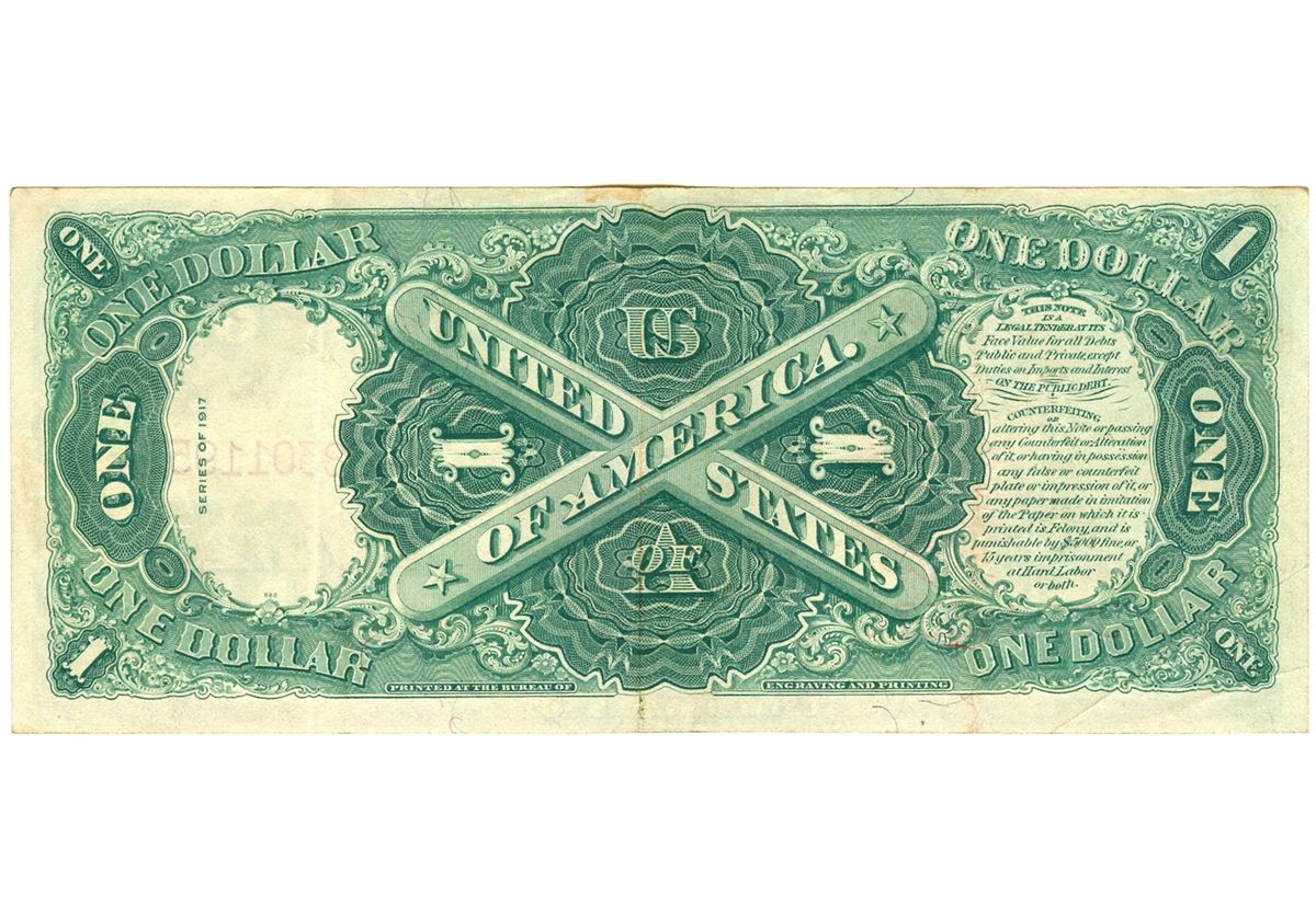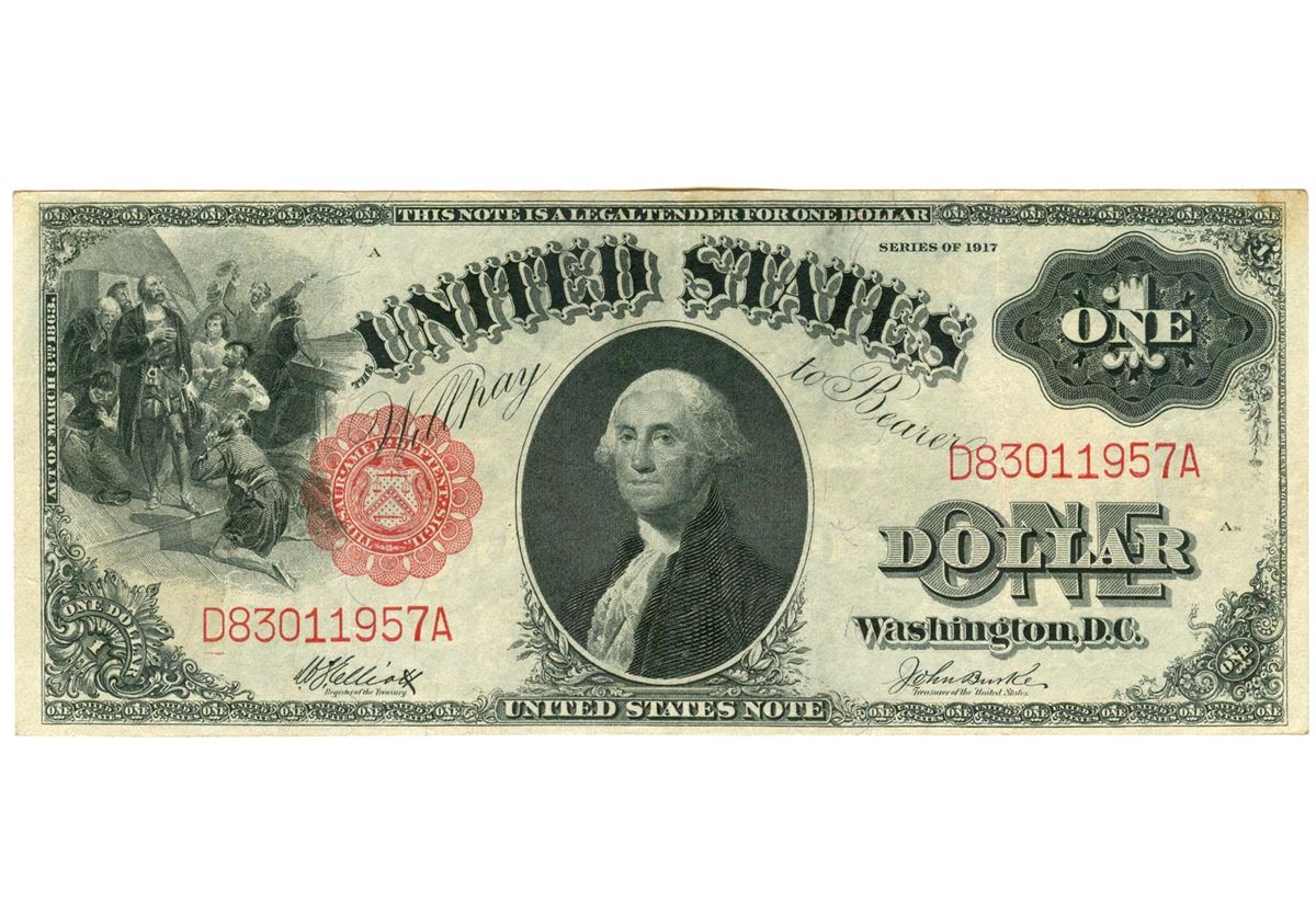 One 1917 $1 Saw-Horse Legal Tender Bank Note.