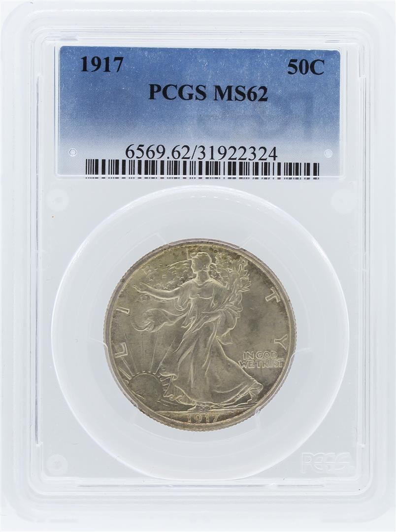 One 1917 PCGS MS62 Liberty Walking Half Dollar. PCGS Certified.
