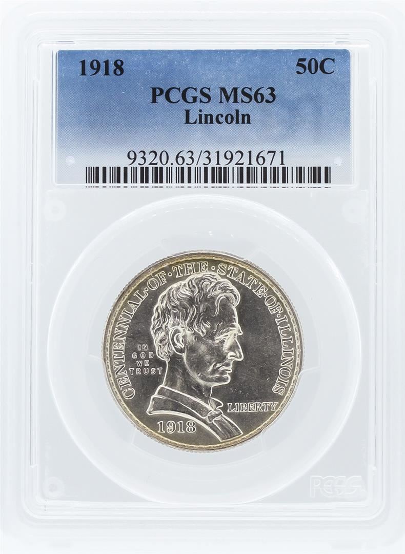 One 1918 PCGS MS63 Lincoln-Illinois Centennial Half Dollar. PCGS Certified.