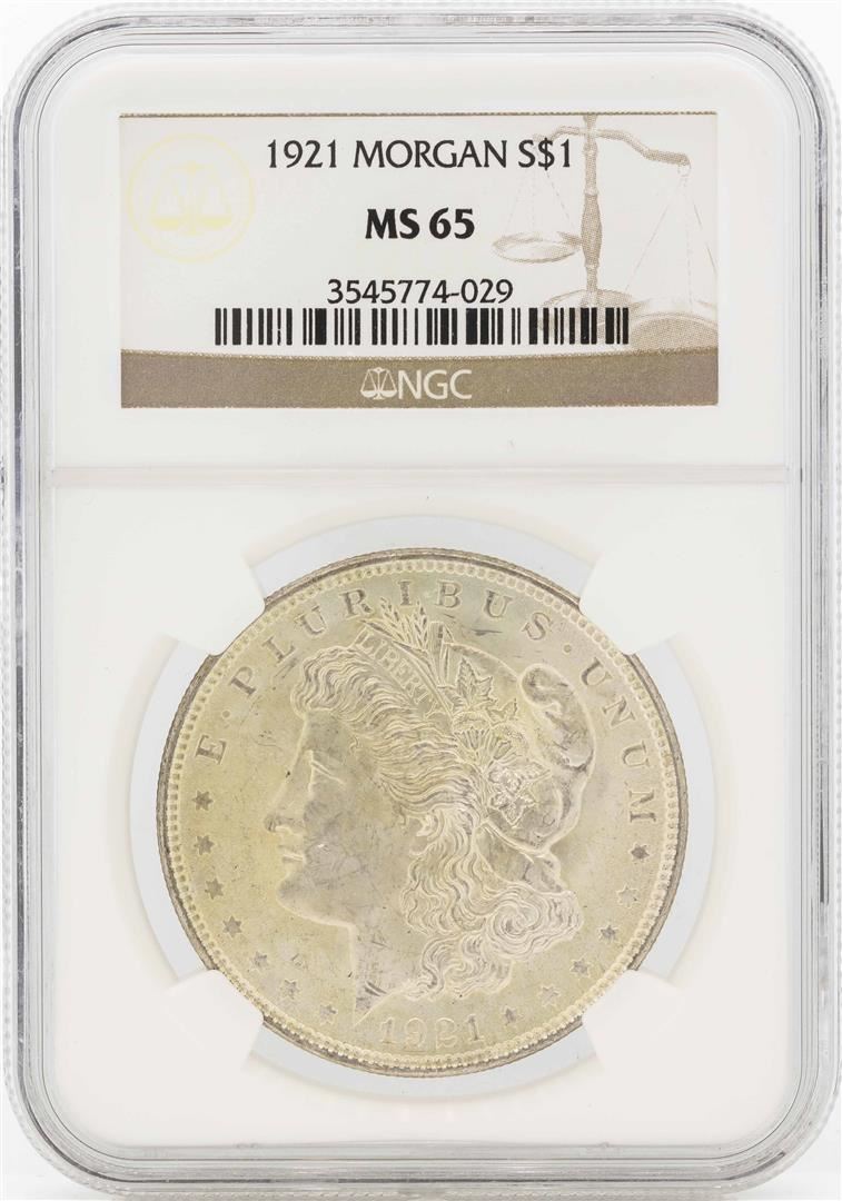 One 1921 $1 Morgan Silver Dollar Coin NGC MS65. NGC Certified.