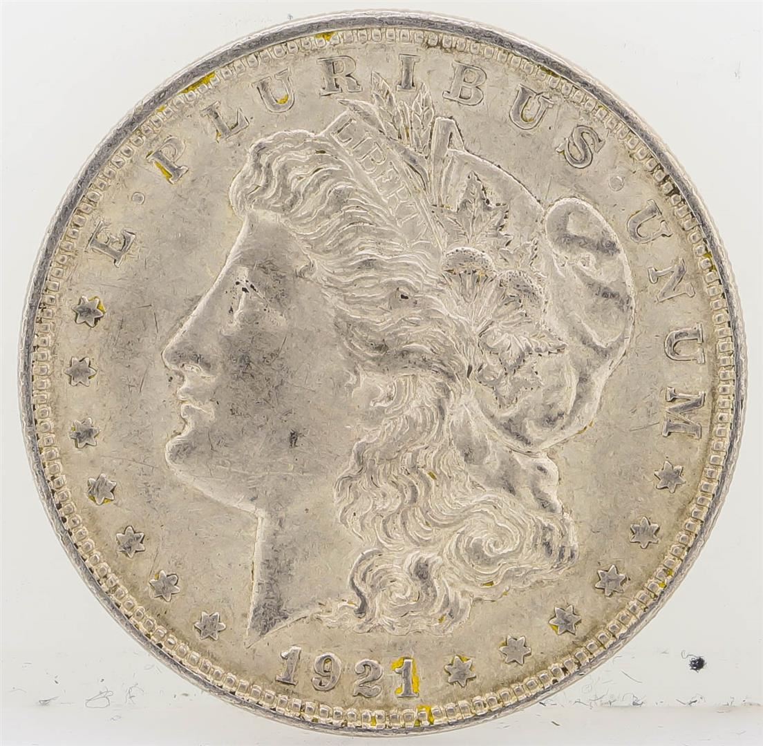 One 1921-D Morgan Silver Dollar.