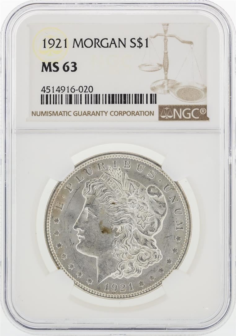 One 1921 NGC MS63 Morgan Silver Dollar. NGC Certified.