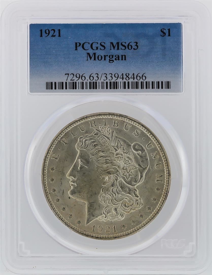 One 1921 PCGS MS63 Morgan Silver Dollar. PCGS Certified.