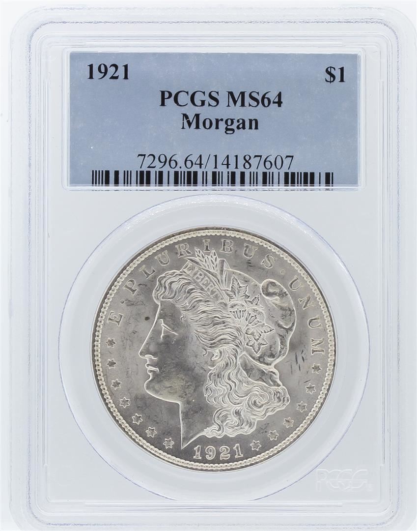 One 1921 PCGS MS64 Morgan Silver Dollar. PCGS Certified.