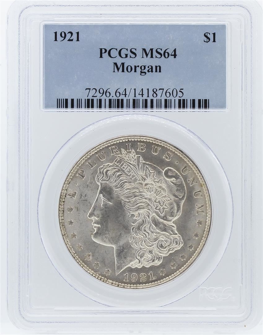One 1921 PCGS MS64 Morgan Silver Dollar. PCGS Certified.