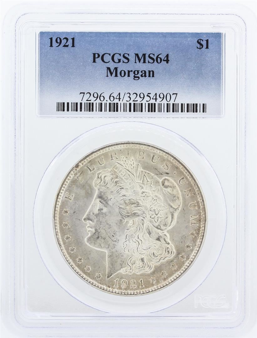 One 1921 PCGS MS64 Morgan Silver Dollar PCGS Certified.